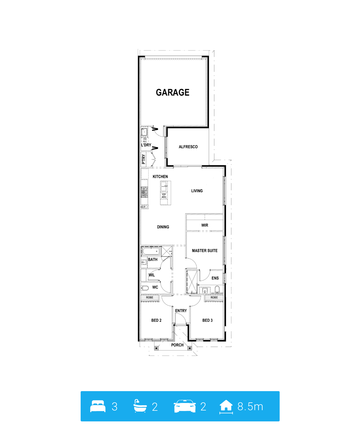 The 2 car garage is positioned at the rear of the home, freeing up the front and creating a unique street presence.