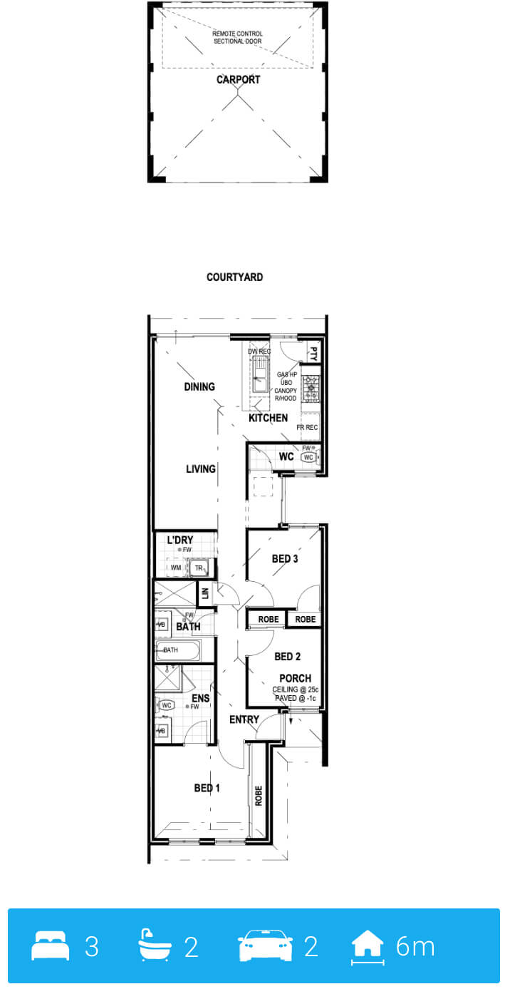 Designed for small blocks, this cosy, stylish home design doesn’t skimp on the details, making it truly iconic. Despite its compact design, this home features an open-plan living area with a functional island kitchen that overlooks a gorgeous courtyard. The bedrooms each have their own built-in robes and are located towards the rear of the house, away from the hustle and bustle of the street. Plus, with a carport that accommodates two vehicles, you’ll have all the space you need.