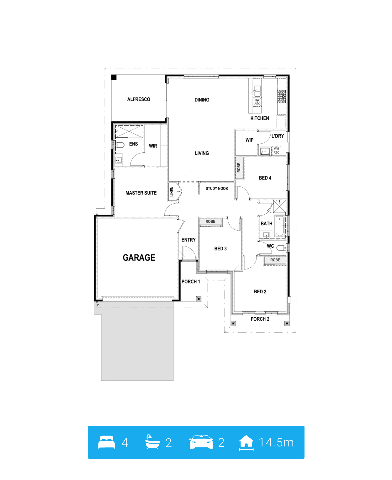 Looking at spicing up your life? Well don’t we have a treat for you! The SPICY is exactly that, with a huge entertaining space, including you kitchen, living and dining rooms, walk in pantry, and outdoor alfresco space! Don’t even get me started on the spicy size of the Master bedroom, of course, with attached ensuite and big walk in robe! Into entertaining or have a family? Well with three spare bedrooms, spare bathroom and even a study nook, there is really something for everyone in this spicy house design!