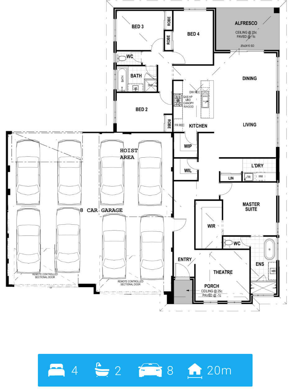 And when it comes to toys? Choose your garage weapon: 2, 3, 4, 6, or even 8-car options, with hoist areas, tandem setups, and workshop space for those “just one more project” weekends. Practical touches like the walk-in pantry, scullery, double linen closets, and smart storage throughout mean The Wingman is always ready to back you up — and make everyday living easier. Laid-back, loaded with features, and always ready when you are — that’s The Wingman.